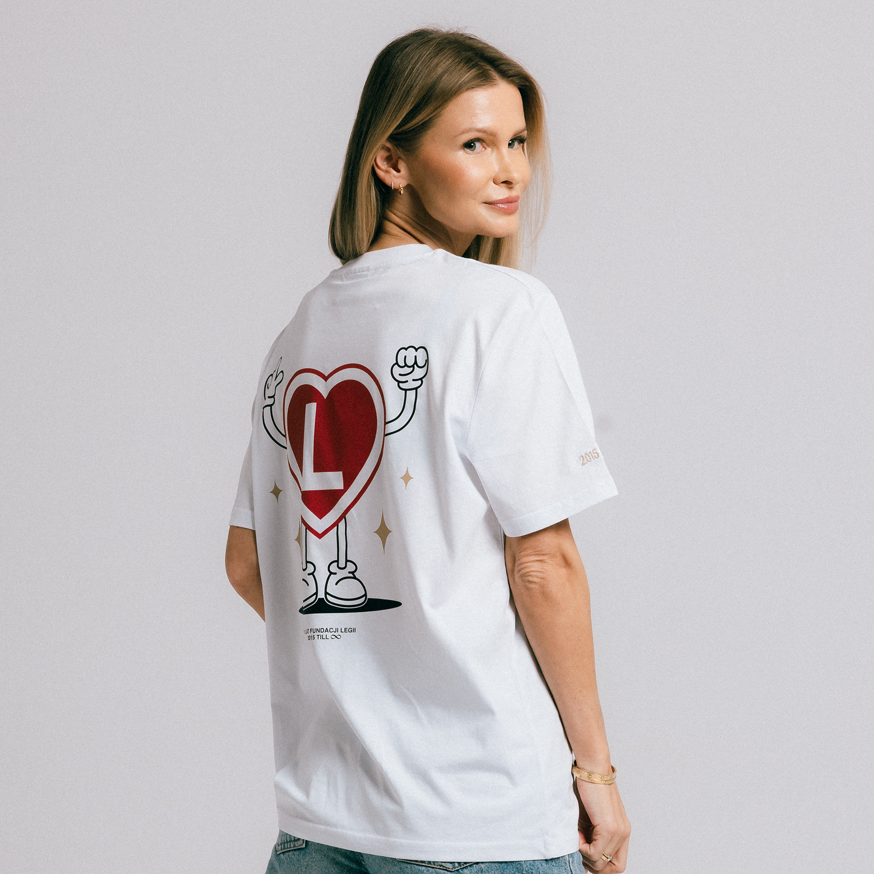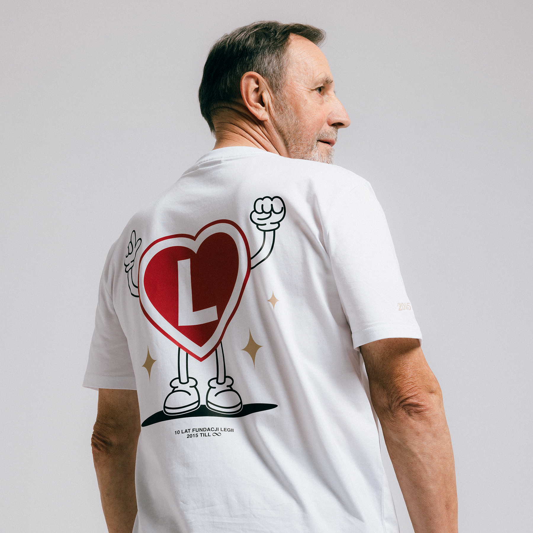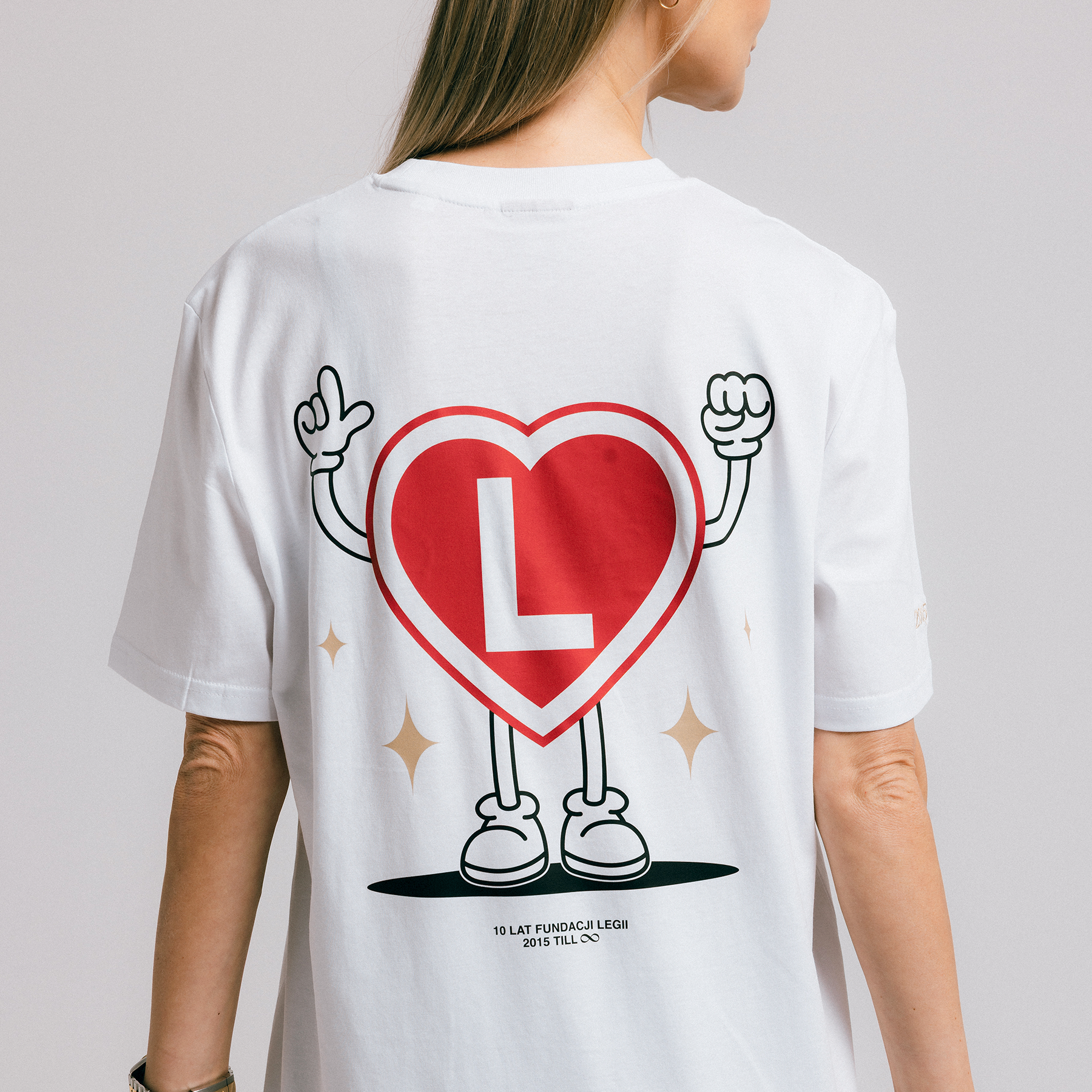 Biała koszulka unisex Fundacji Legii – 10 lat pomagania z sercem