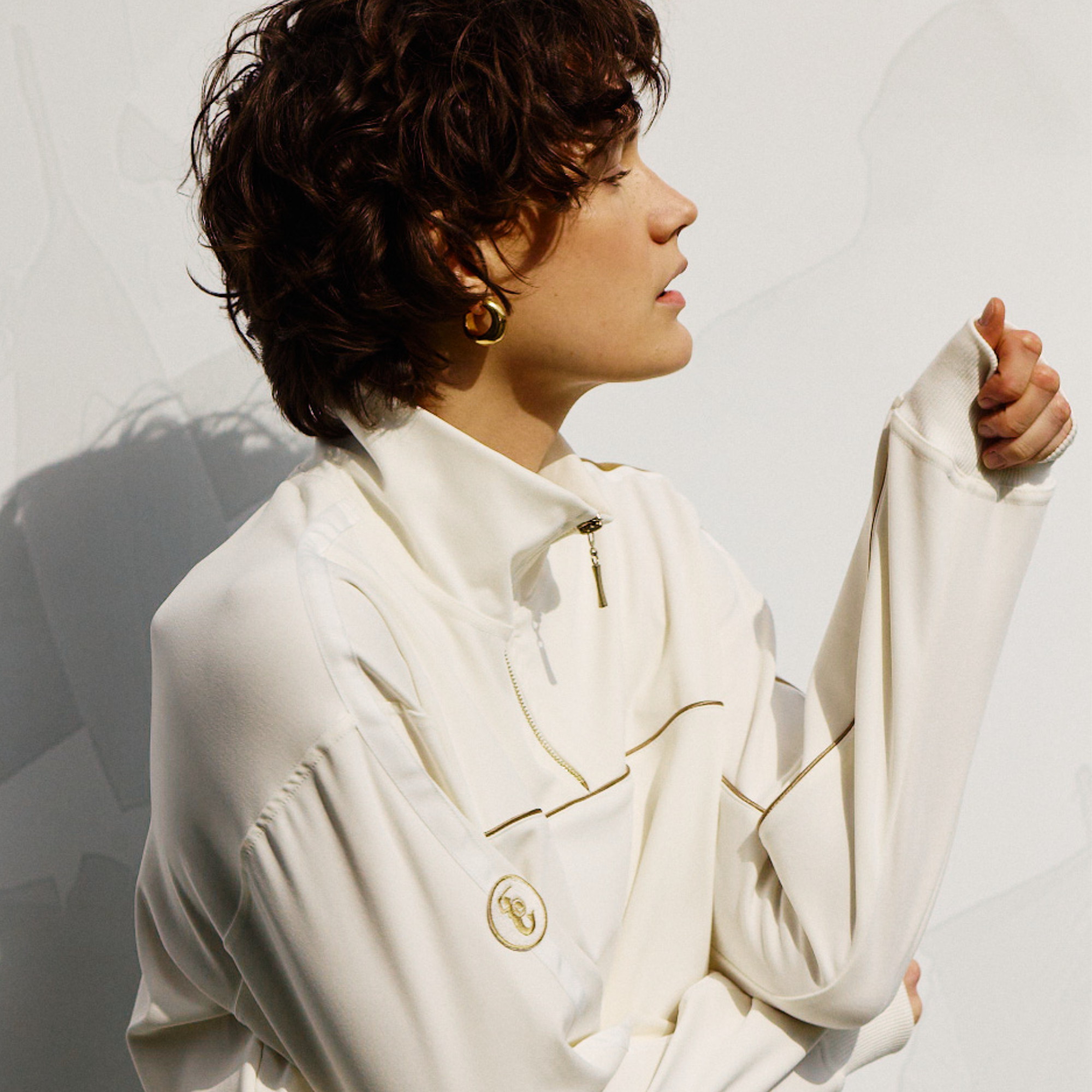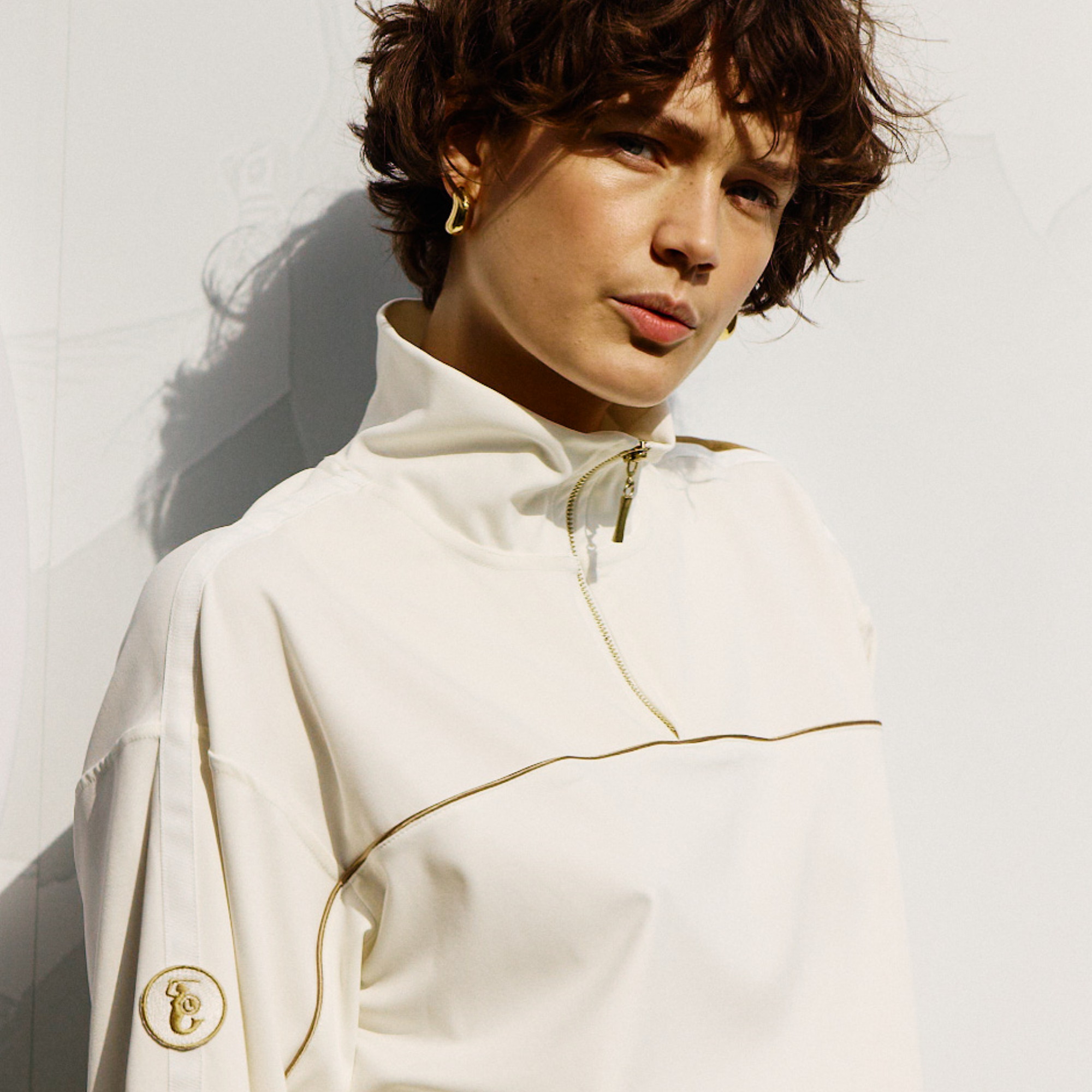 - Konstrukcja: Oversizowy krój, stójka ze złotym zamkiem, emblemat Syrenki na prawym rękawie.