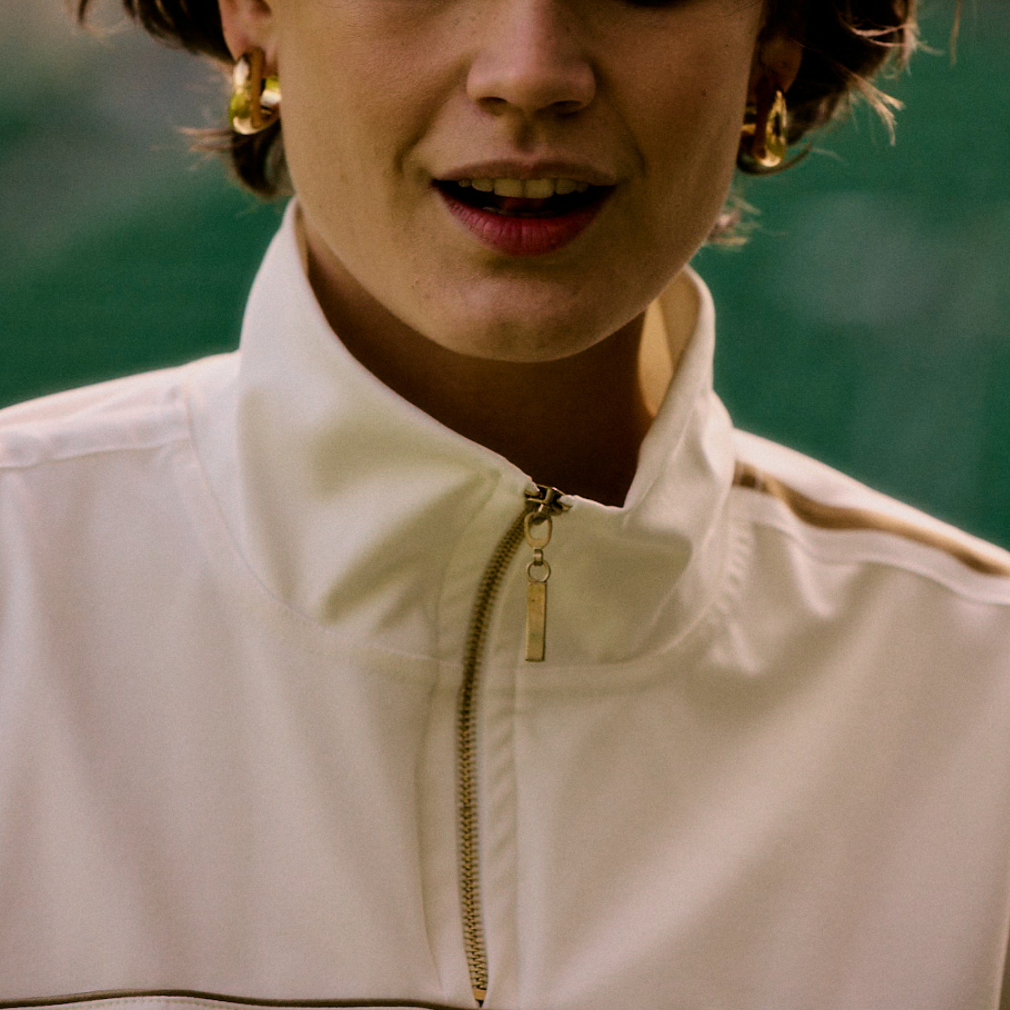- Złoty zamek w stójce nadaje całości elegancji i umożliwia regulację dopasowania.