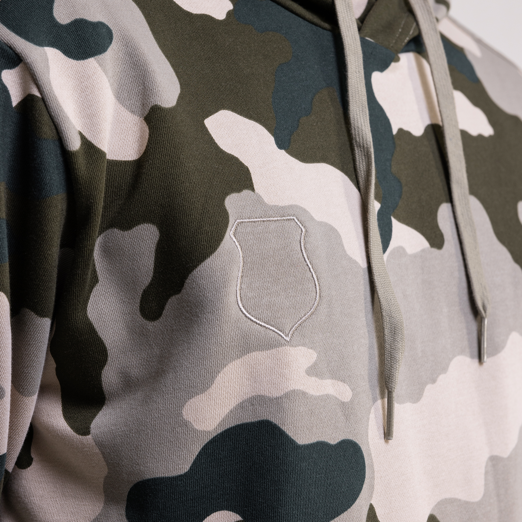 Męska bluza z kapturem w kamuflażowym wzorze, z subtelnym obrysem herbu na piersi. Ciepła, wygodna i idealna na każdą okazję. Sprawdź w Legia FanStore!