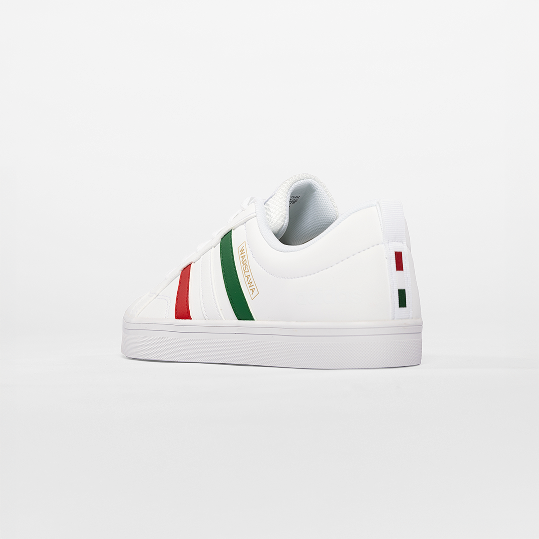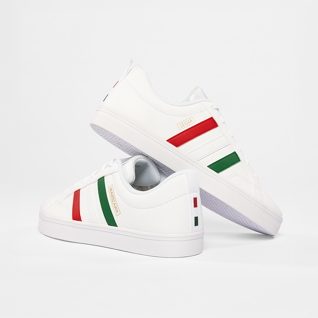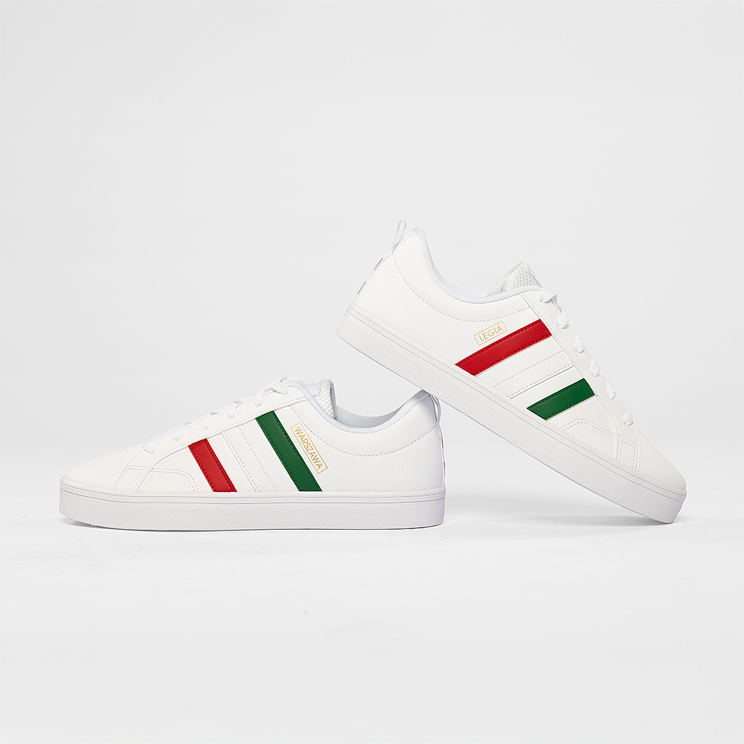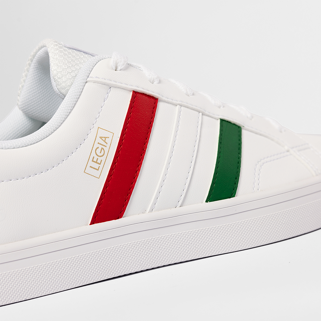 Specjalnie dla legijnych kibiców buty zostały wzbogacone o klubowe barwy. Klasyczne trzy paski pomalowaliśmy na czerwono, biało i zielono. Od zewnętrznej strony oba buty zdobią napisy: LEGIA i WARSZAWA, natomiast na pięcie pionowo wszyto żakardową wstawkę.