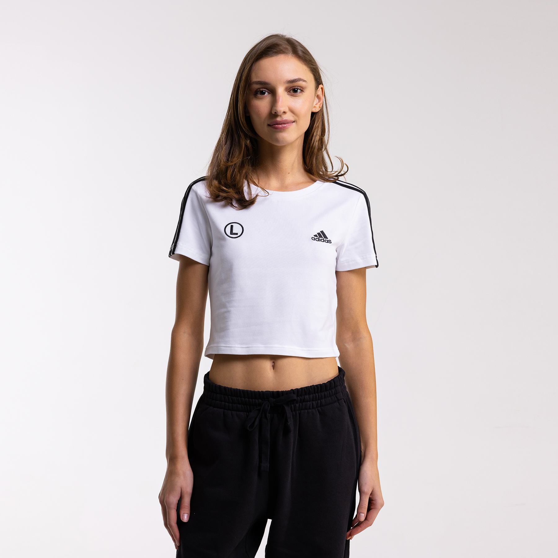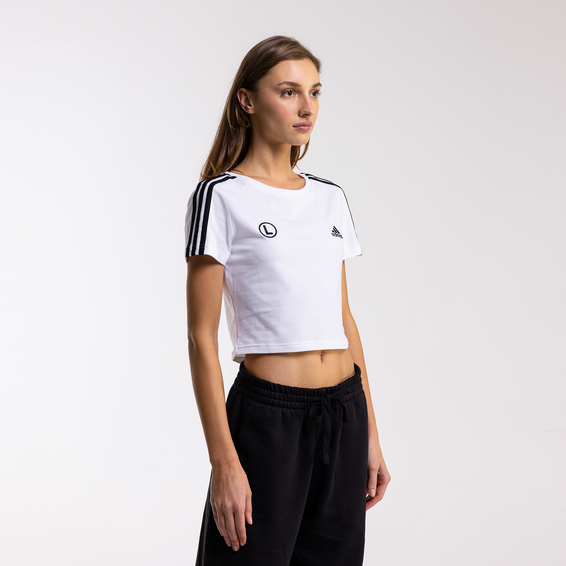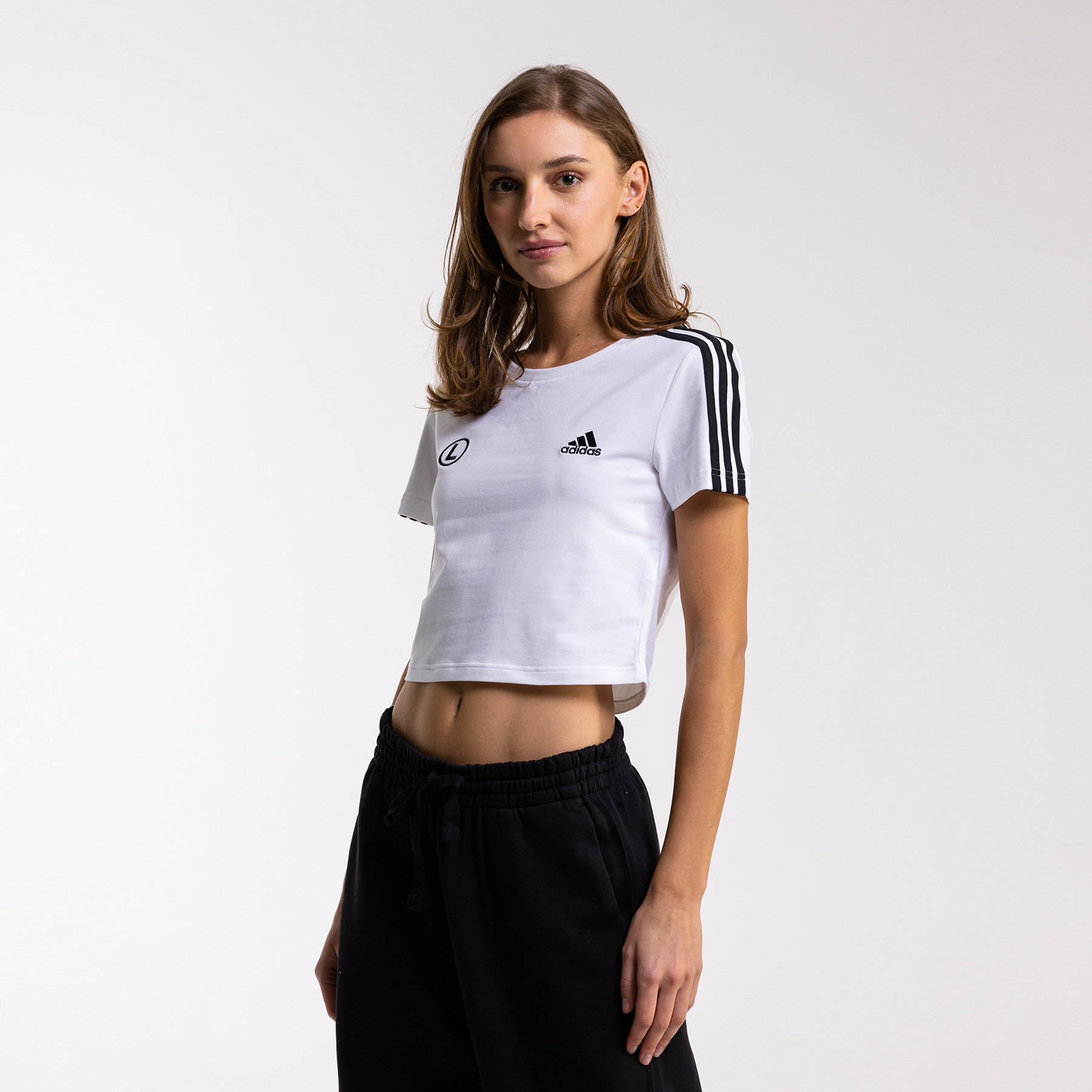 Stylowy crop top adidas z 3 paskami i eLką na piersi. Komfortowy krój, Better Cotton. Idealny wybór na co dzień i wieczór. Sprawdź w Legia FanStore!