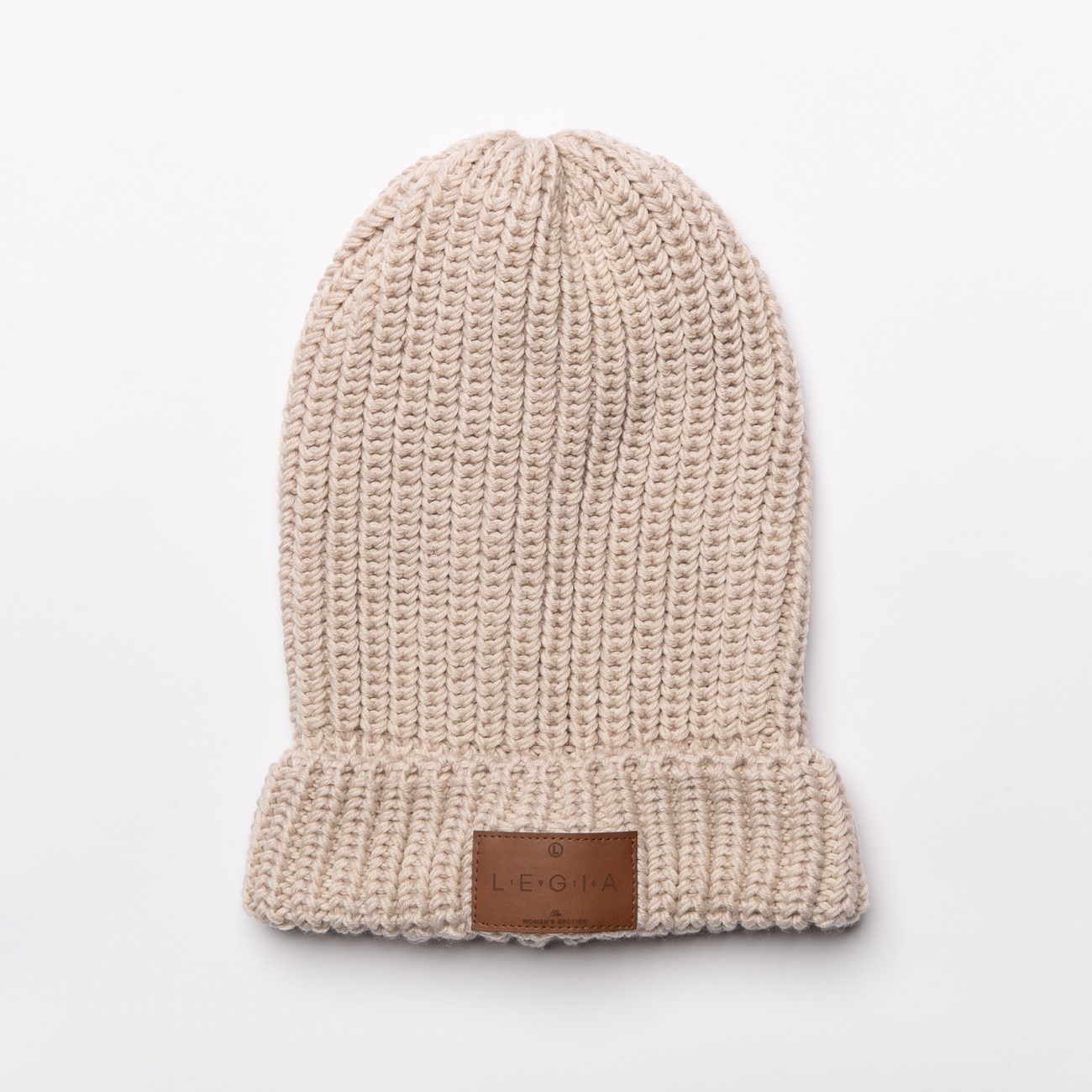 Czapka zimowa ecru damska Legii z brązową naszywką i czarną „eLką” w kółeczku. Idealna na zimowe dni dla każdej fanki Legii. Sprawdź w Legia FanStore!