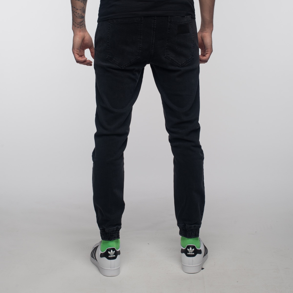Czarne Jeansowe Joggery z Haftem i Naszywką Legii Warszawa