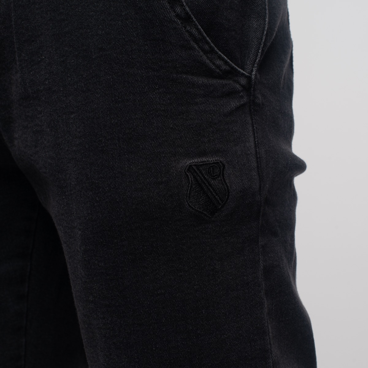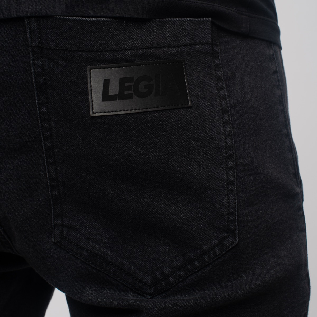 Czarne joggery jeansowe Legii Warszawa to połączenie miejskiego stylu z kibicowską pasją. Wyróżniają się subtelnym haftem herbu przy przedniej kieszeni i naszywką „Legia” na tylnej kieszeni. Sznurek do regulacji w pasie oraz ściągacze w nogawkach zapewniają wygodę i nowoczesny wygląd.