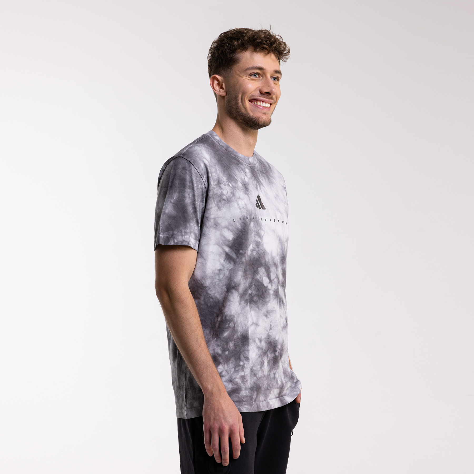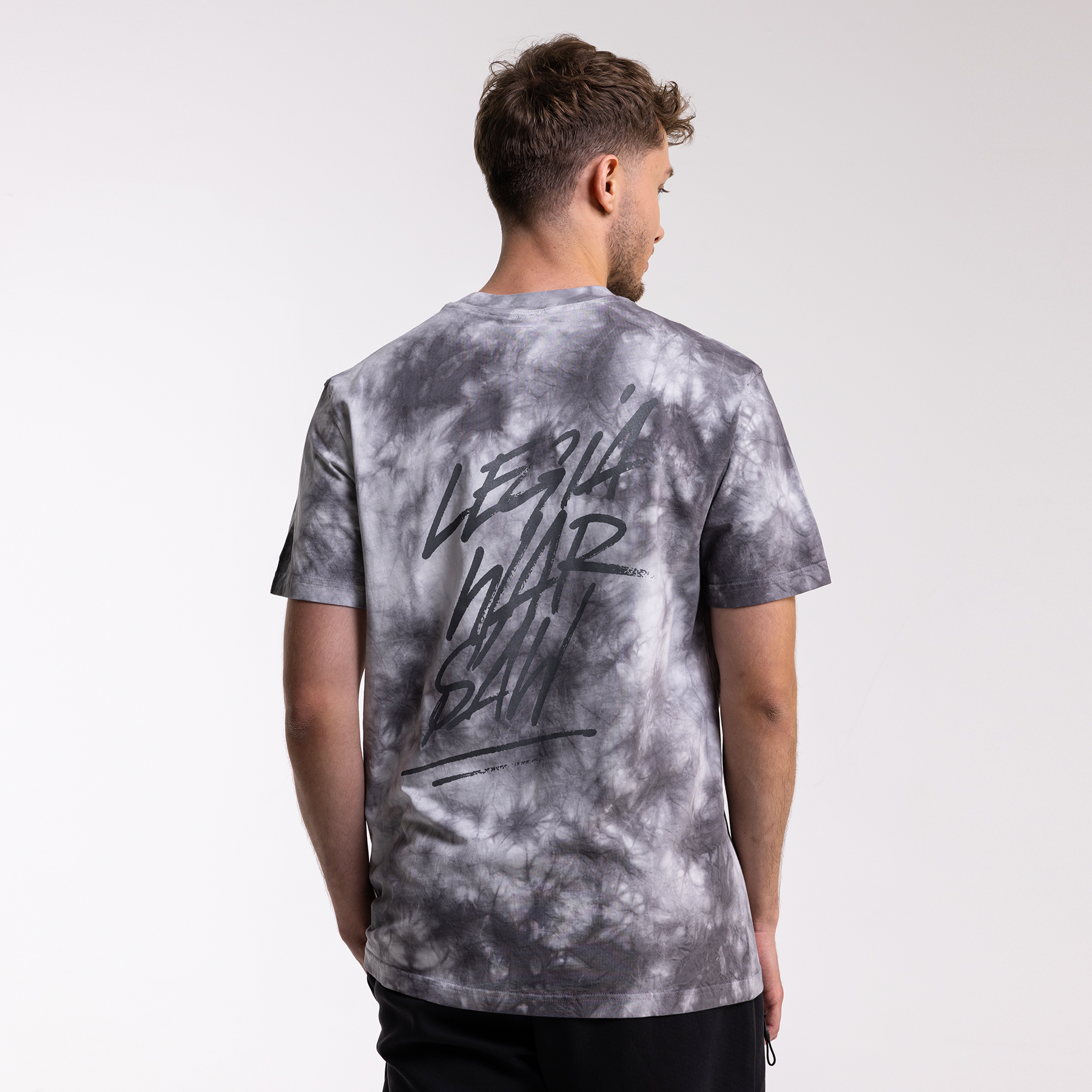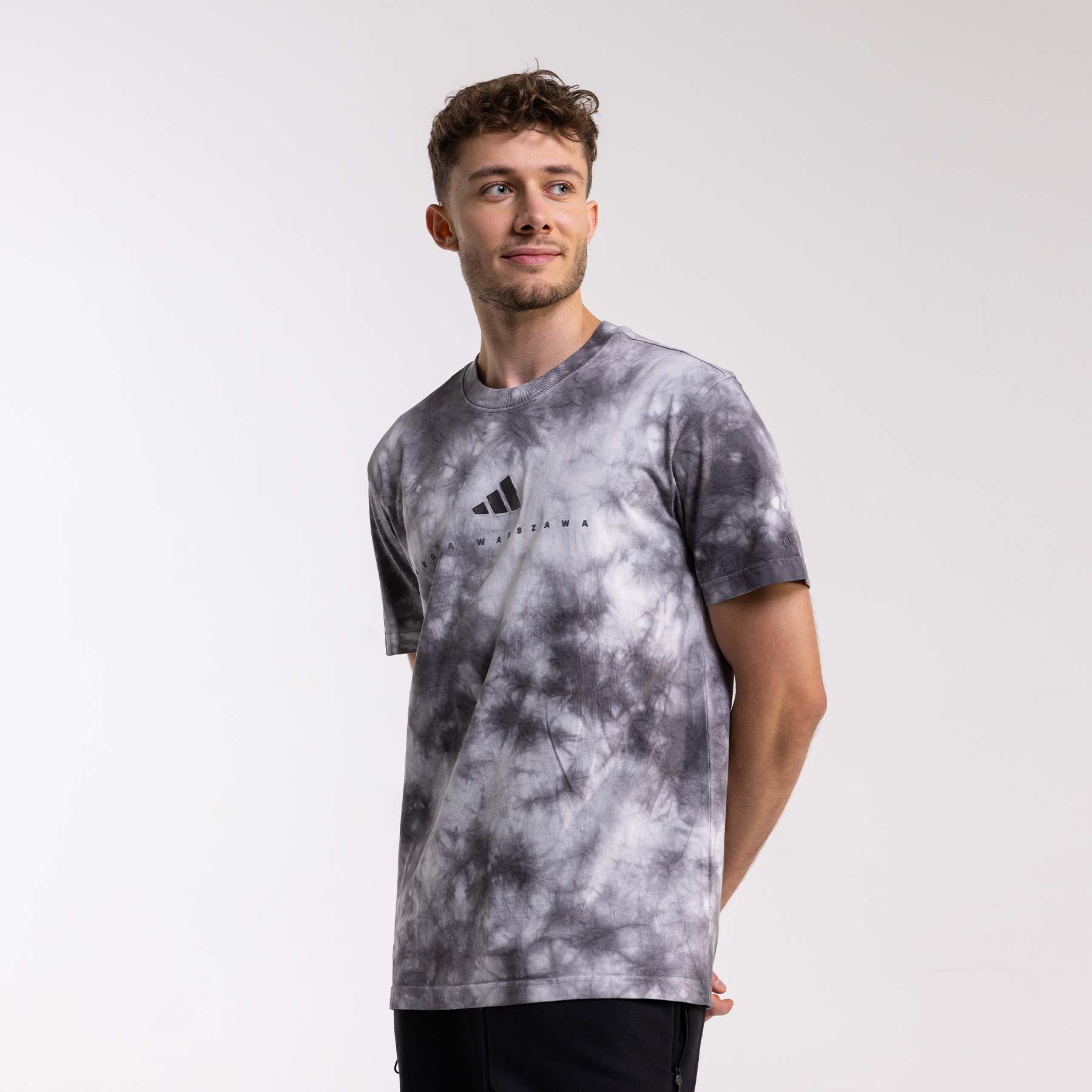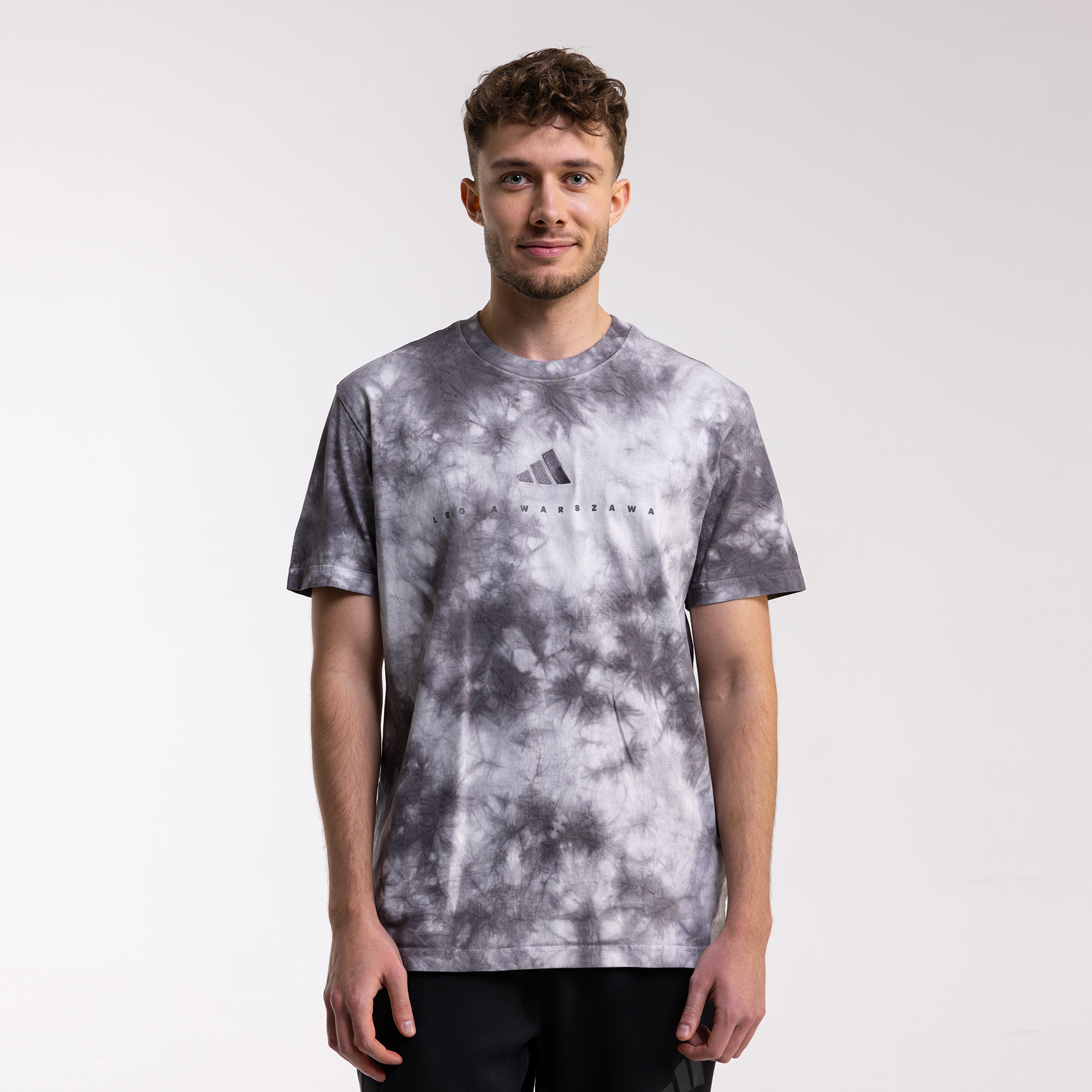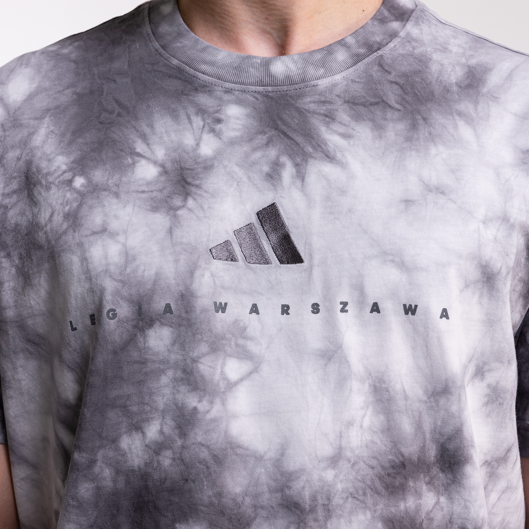 Koszulka wyróżnia się efektownym, marmurkowym wzorem w odcieniach czerni i szarości, który nadaje jej charakteru. Na środku klatki piersiowej umieszczono minimalistyczne logo adidas oraz subtelny napis „LEGIA WARSZAWA”, tworzący sportowy, a jednocześnie streetwearowy look.