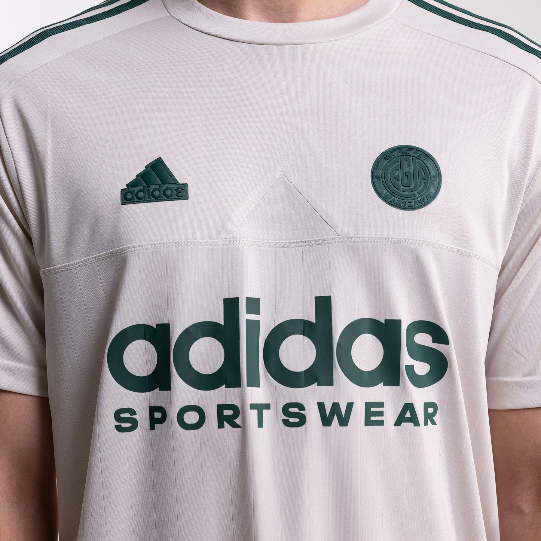 Z przodu znajdziesz subtelnie wkomponowany napis „adidas Sportswear”, który podkreśli Twoją sportową tożsamość. Po lewej stronie klatki piersiowej gumowe logo adidas dodaje charakteru, a po prawej gumowy emblemat „W.K.S. Legia Warszawa” pozwala Ci dumnie pokazać swoje kibicowskie serce. Kultowe 3 paski na rękawach to znak jakości i dziedzictwa adidas, który podkreśli Twój sportowy styl. Minimalistyczny design na plecach sprawia, że koszulka prezentuje się nowocześnie i pasuje do wielu stylizacji.
