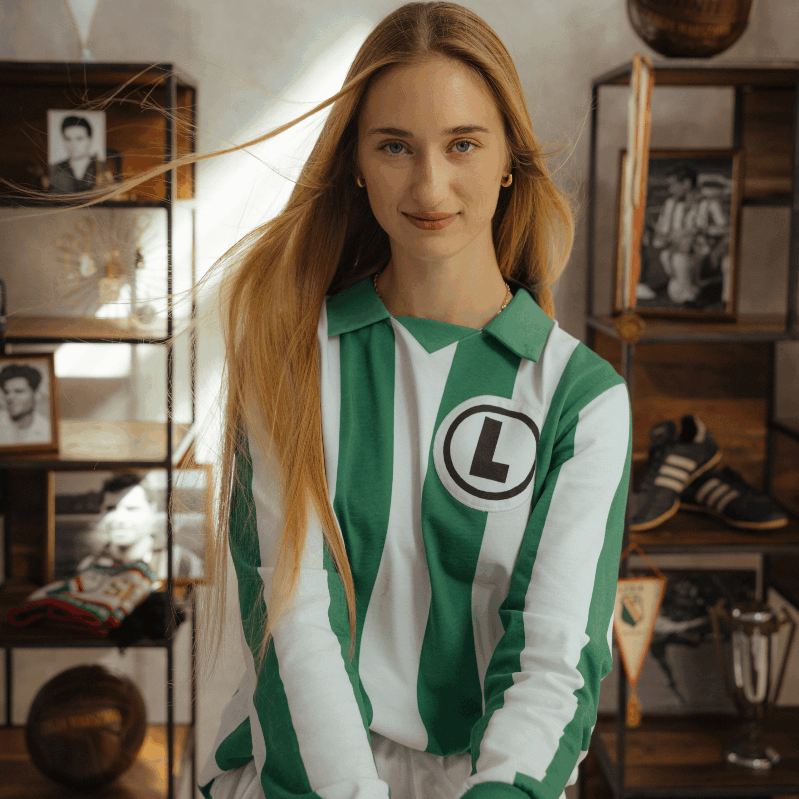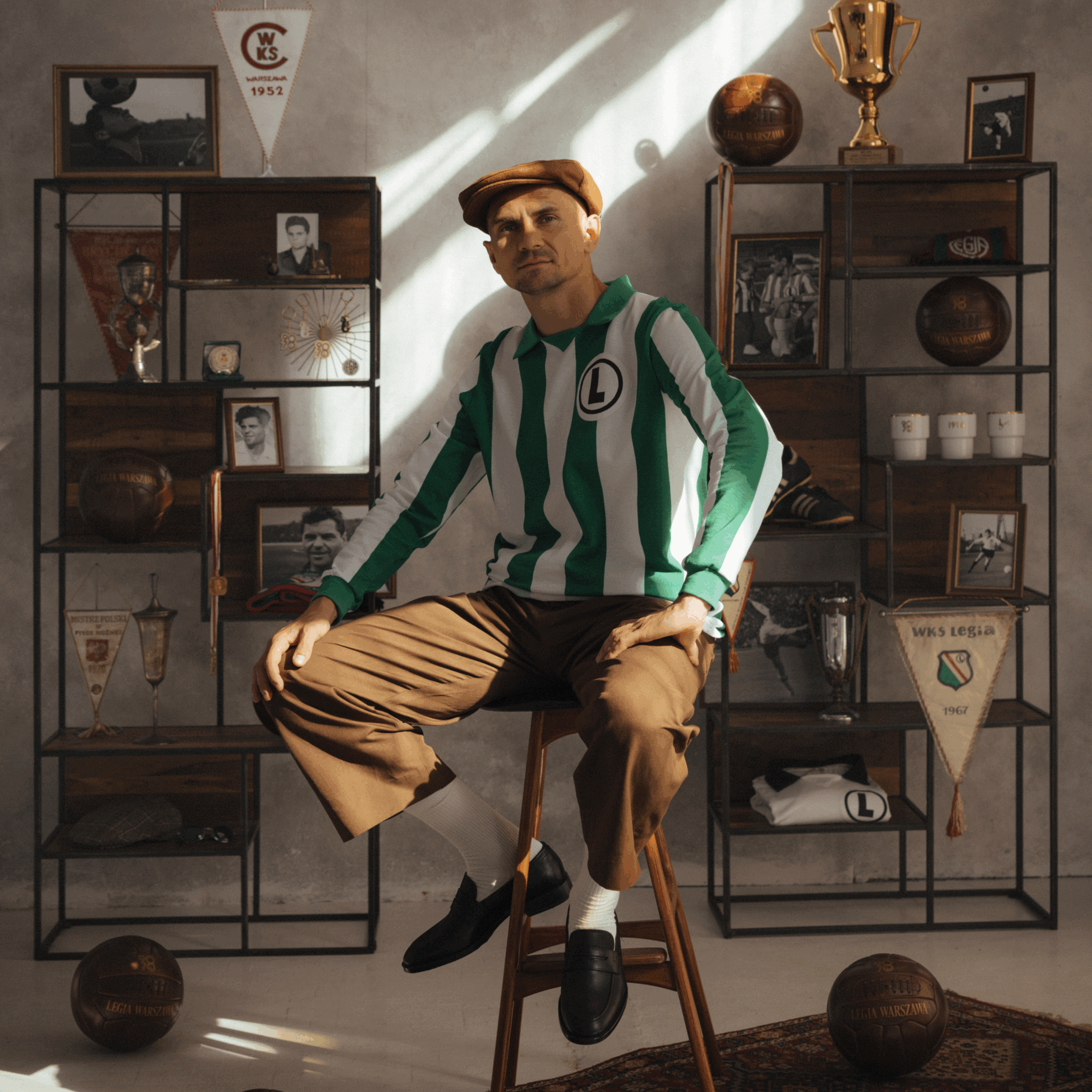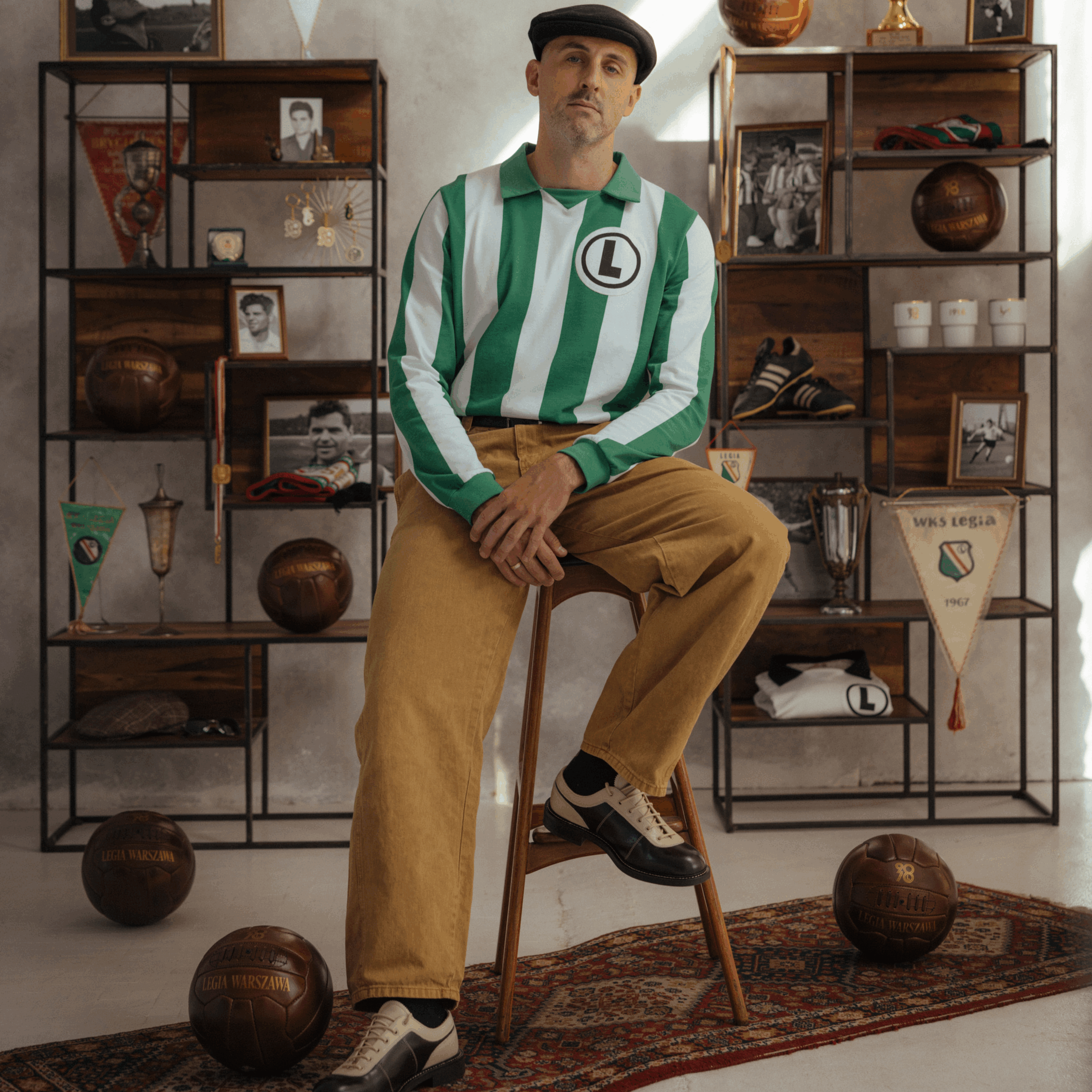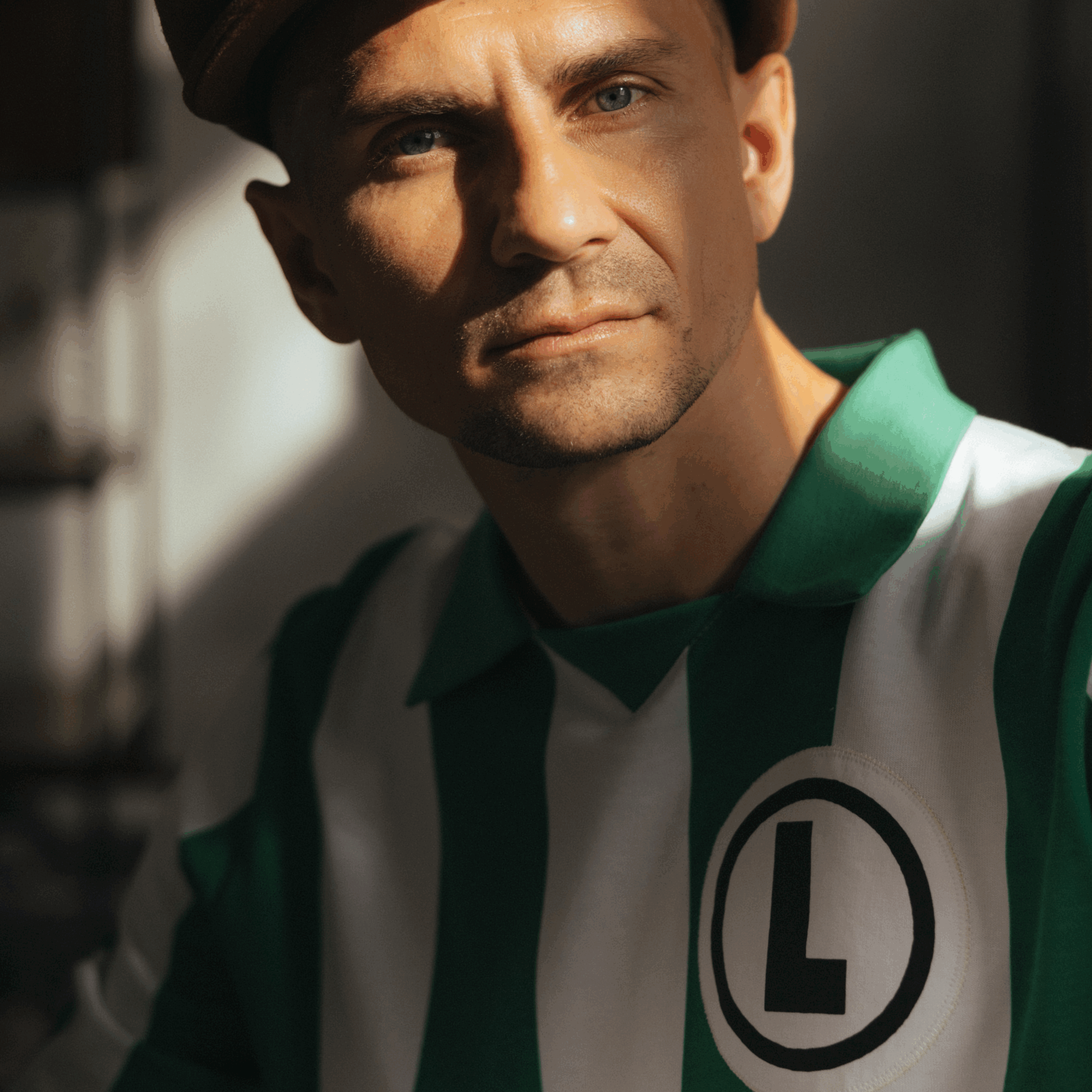 Zielono- biały pasiak wpisał się w historię legijnych trykotów i oczywiście wizerunek naszej Legendy. To właśnie w tych koszulkach Legia z Lucjanem Brychczym na czele rozegrała w 1966 na stadionie X-lecia mecz z Tottenhamem Hotspur, który uświetniał obchody 50-lecia powstania klubu. Dziś w kolekcji 90/70 90 lat Lucjana Brychczego, 70 lat z Legią Warszawa przedstawiamy reprodukcję tej koszulki. Zielono-biały longsleeve wykonany z 100% bawełnianego materiału o gramaturze 260g wykończony kołnierzykiem oraz ściągaczami na mankietach oraz dużą klasyczną eLką w czarnym kółeczku na piersi. Dzianina, której użyliśmy do stworzenia tej koszulki oraz ręcznie wycinane elementy wykorzystanie do zdobienia, jak emblemat upamiętniający jubileusz naszej Legendy, zostały wykonane w Polsce.
