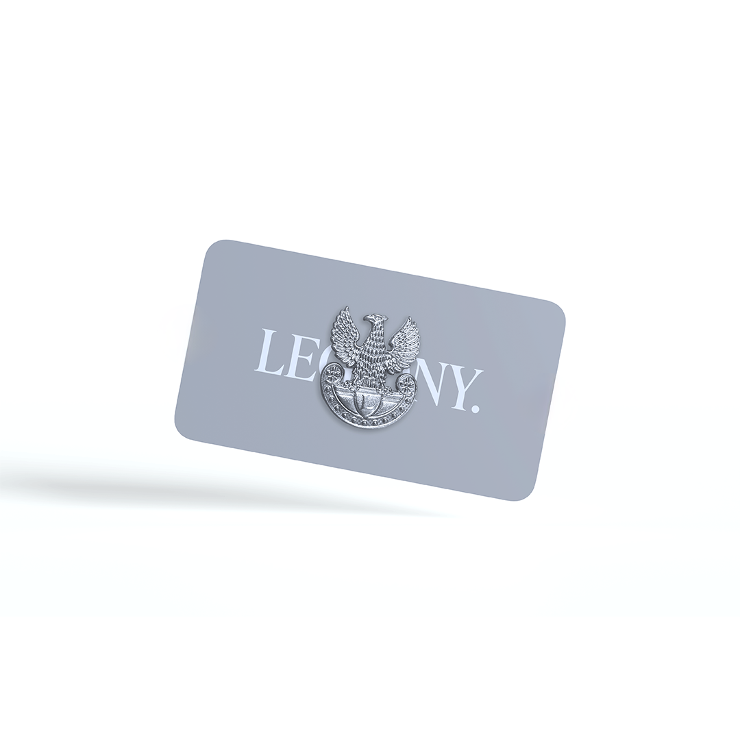 - Pin z herbem Legionów z kartą „LEGIONY”. Dyskretny, elegancki, idealny do kolekcji. Symboliczny dodatek z historycznym motywem – dołączona do zestawu jako kolekcjonerski akcent.