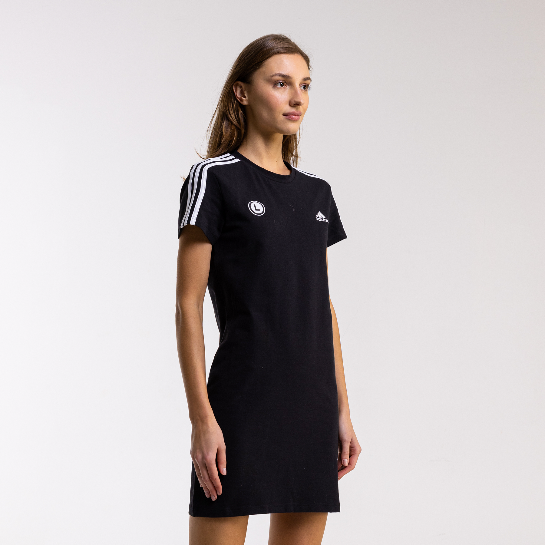 Dzięki t-shirtowej sukience adidas z eLką i 3 paskami poczujesz wygodę i styl każdego dnia. Miękki materiał Better Cotton i dopasowany fason to komfort na ciepłe dni. Sprawdź w Legia FanStore!