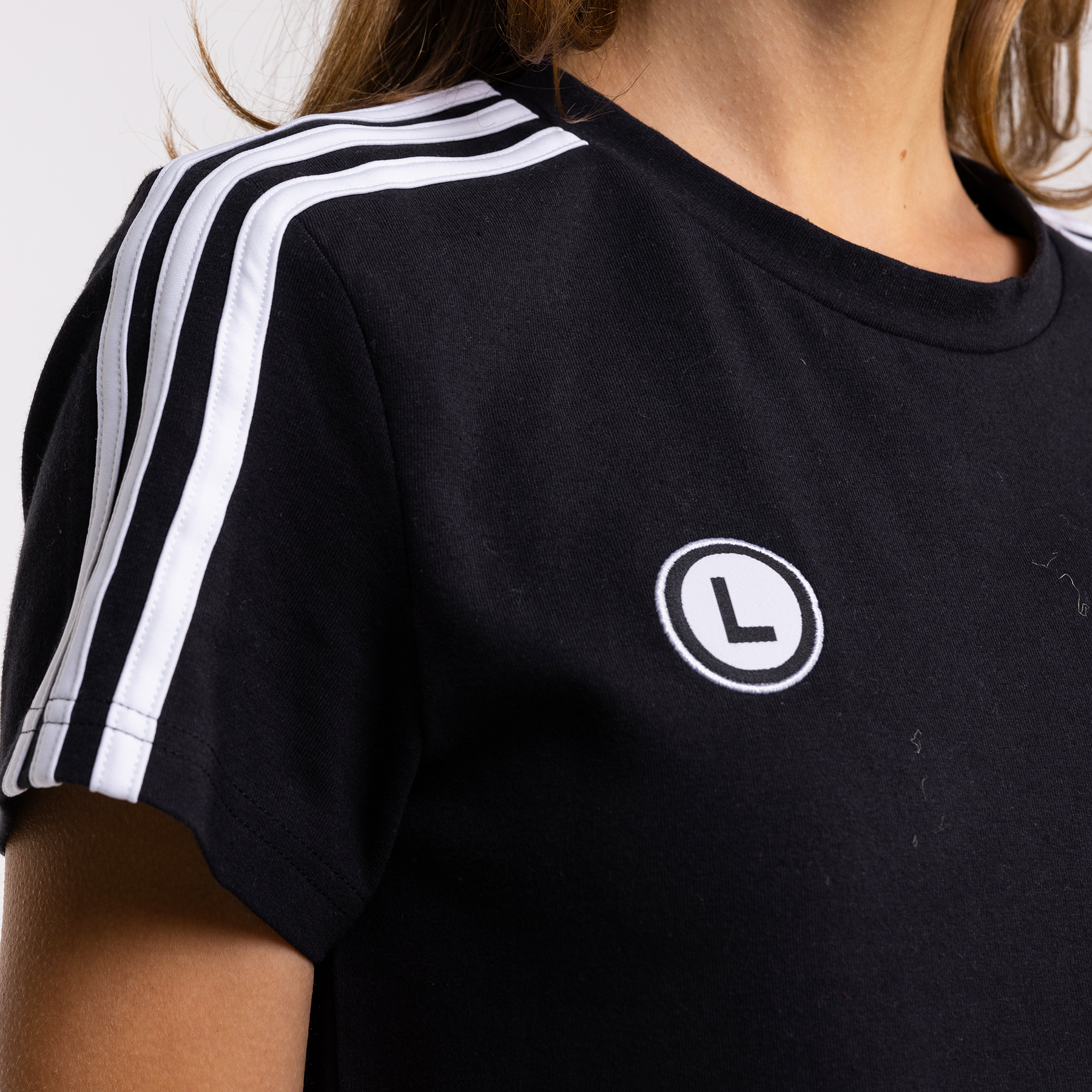 - Design: eLka na piersi, kultowe 3 paski na ramionach, zaokrąglony dekolt.