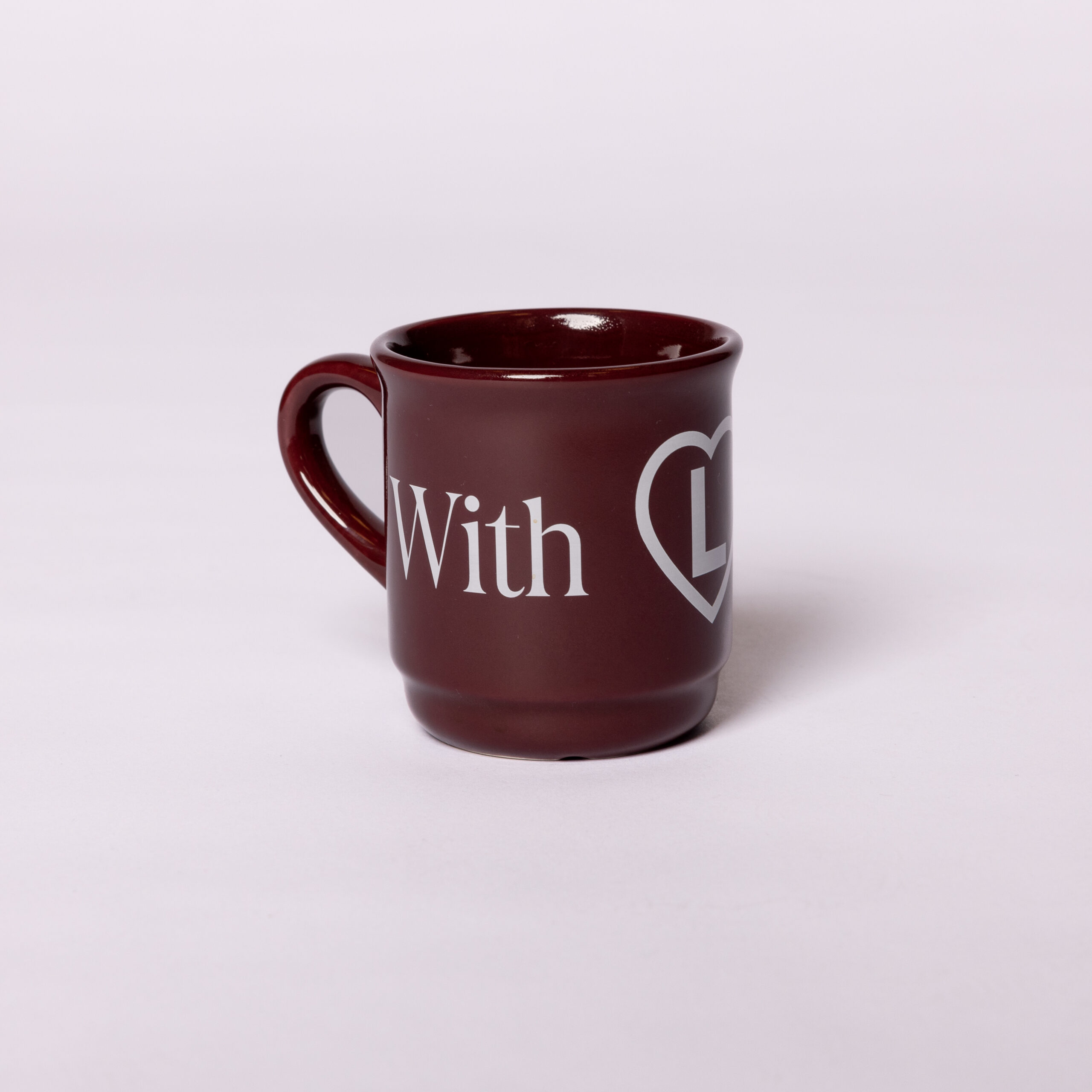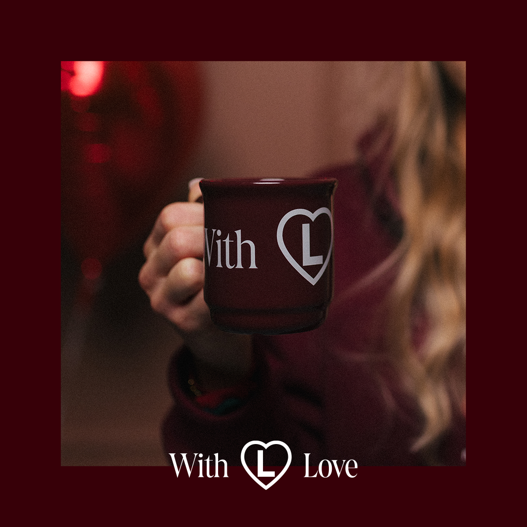 Stylowy kubek w głębokim bordowym kolorze, zaprojektowany z myślą o Walentynkach, dostępny w oficjalnym sklepie Legii Warszawa. Ozdobiony napisem „With Love” oraz symbolem serca z literą „L” w środku.