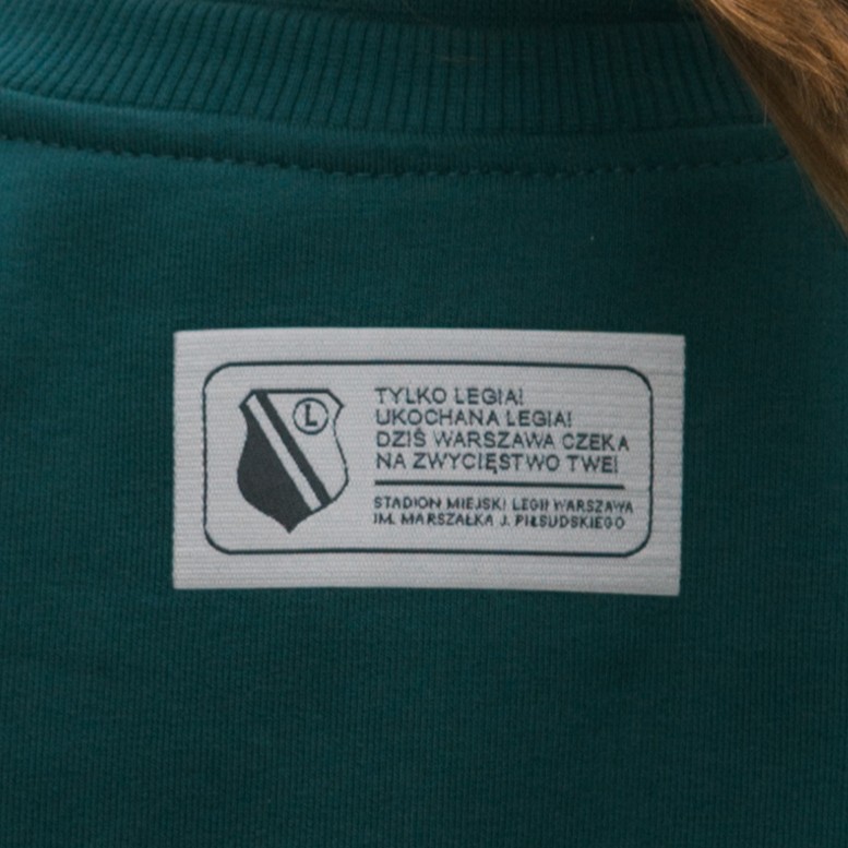 - Tył: naszywka z herbem i napisem „Tylko Legia, ukochana Legia…”