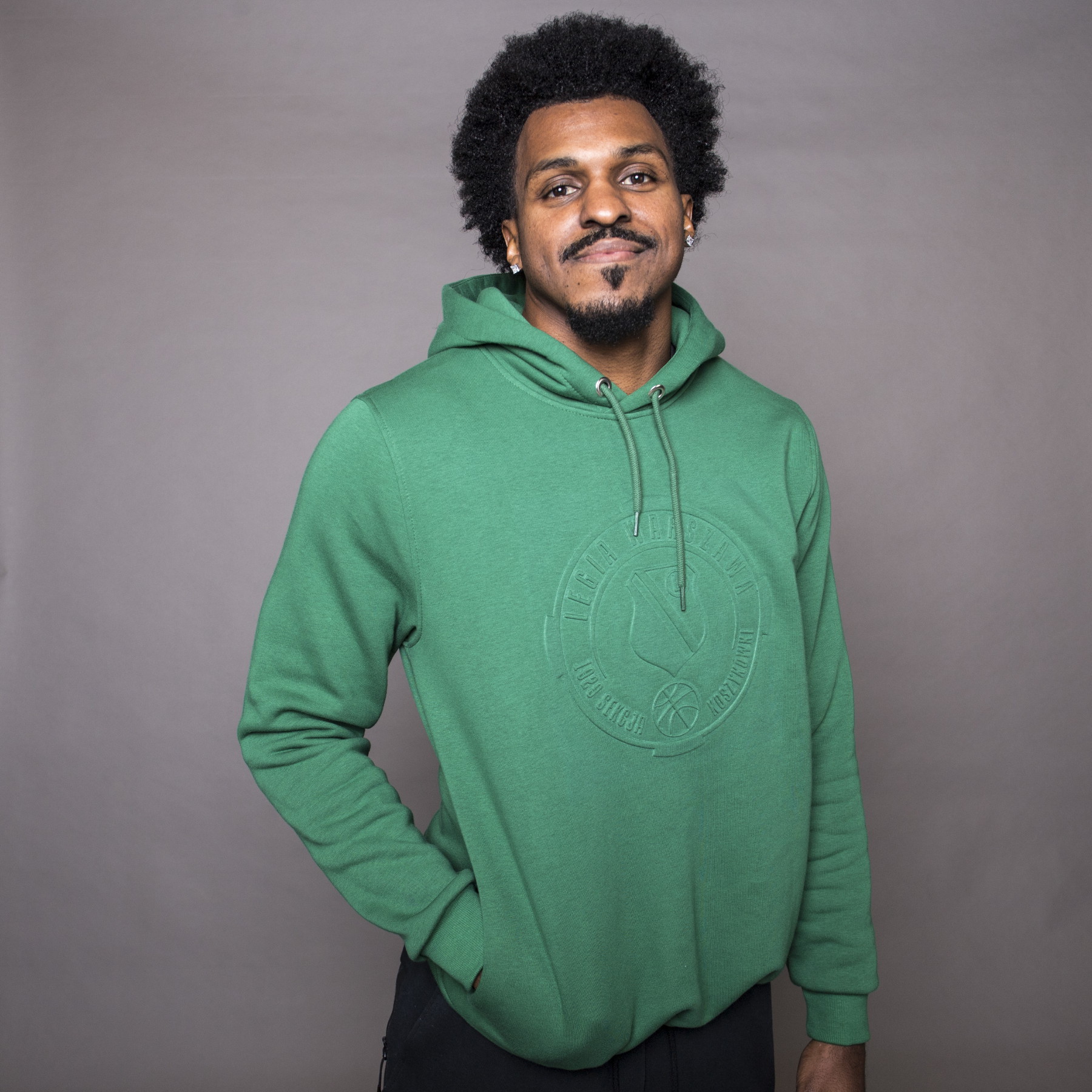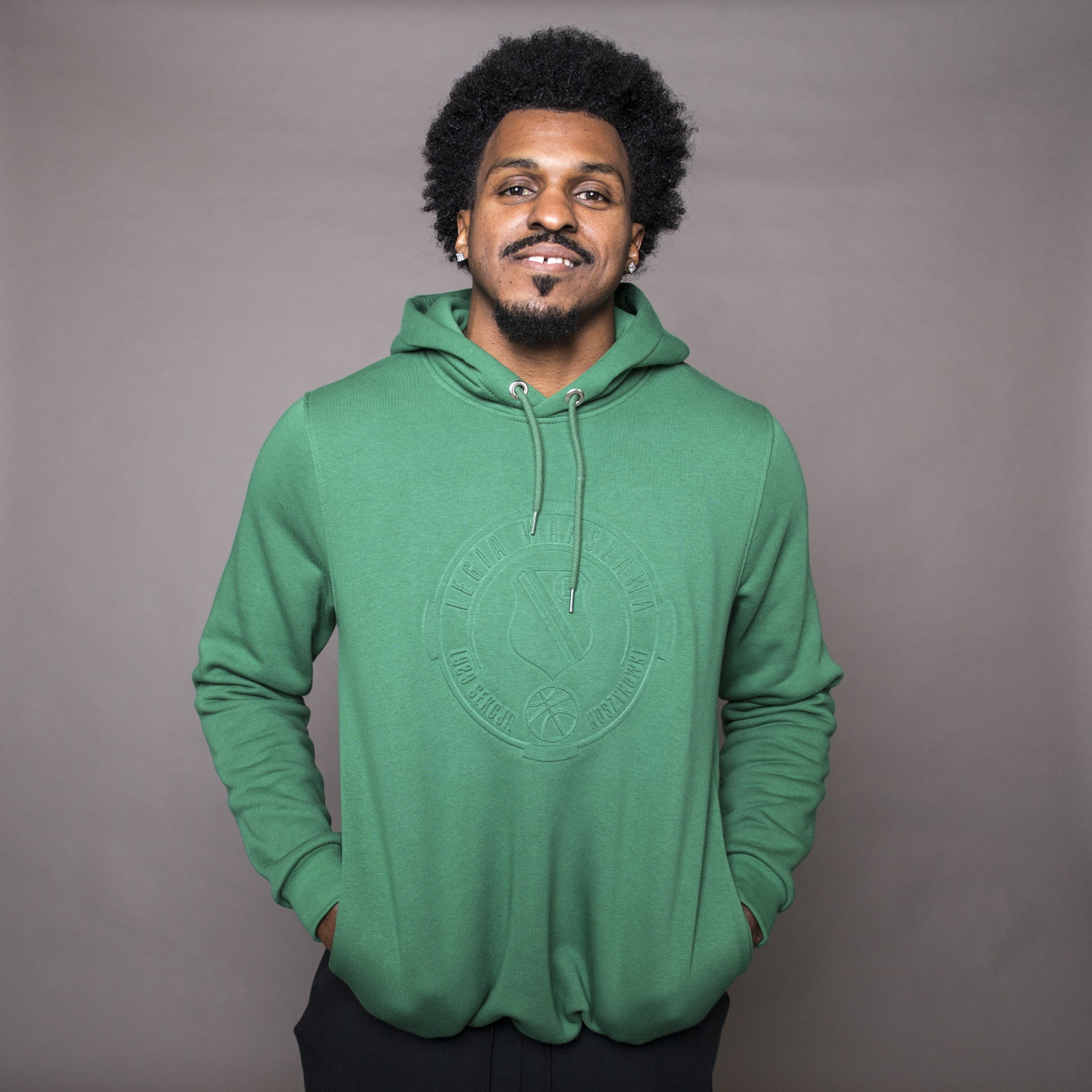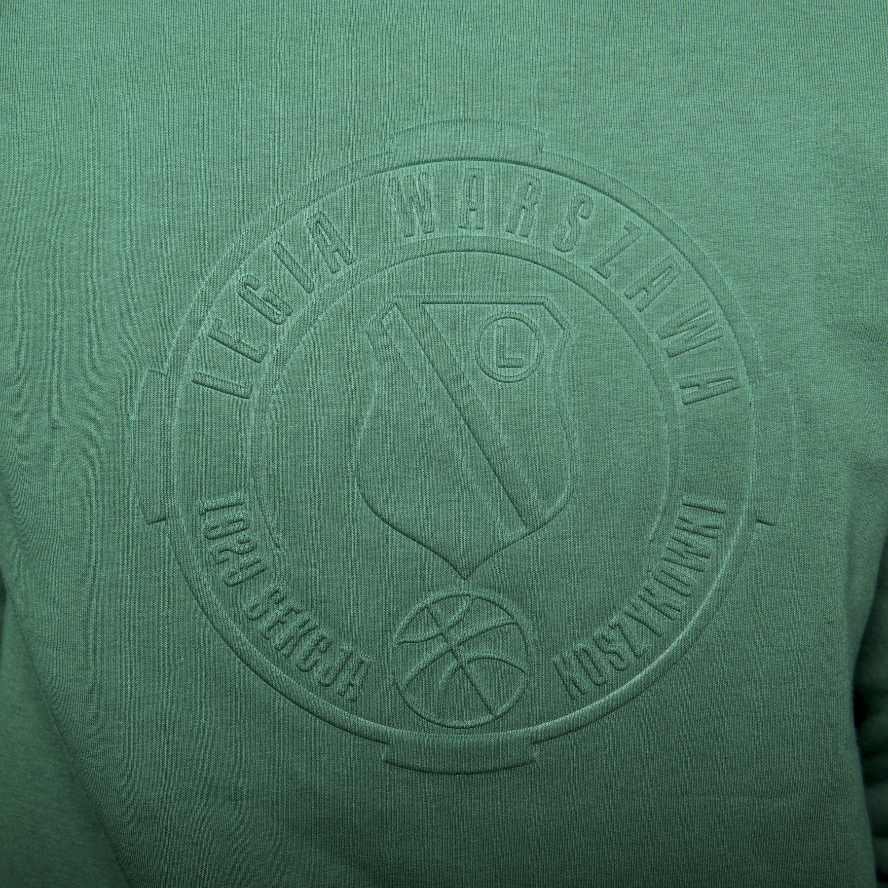 Zielona bluza z kapturem typu hoodie Legia Warszawa z tłoczonym herbem i napisem „Legia Warszawa 1929 Sekcja Koszykówki”. Skład: 95% bawełna, 5% poliester. Sprawdź w Legia FanStore!