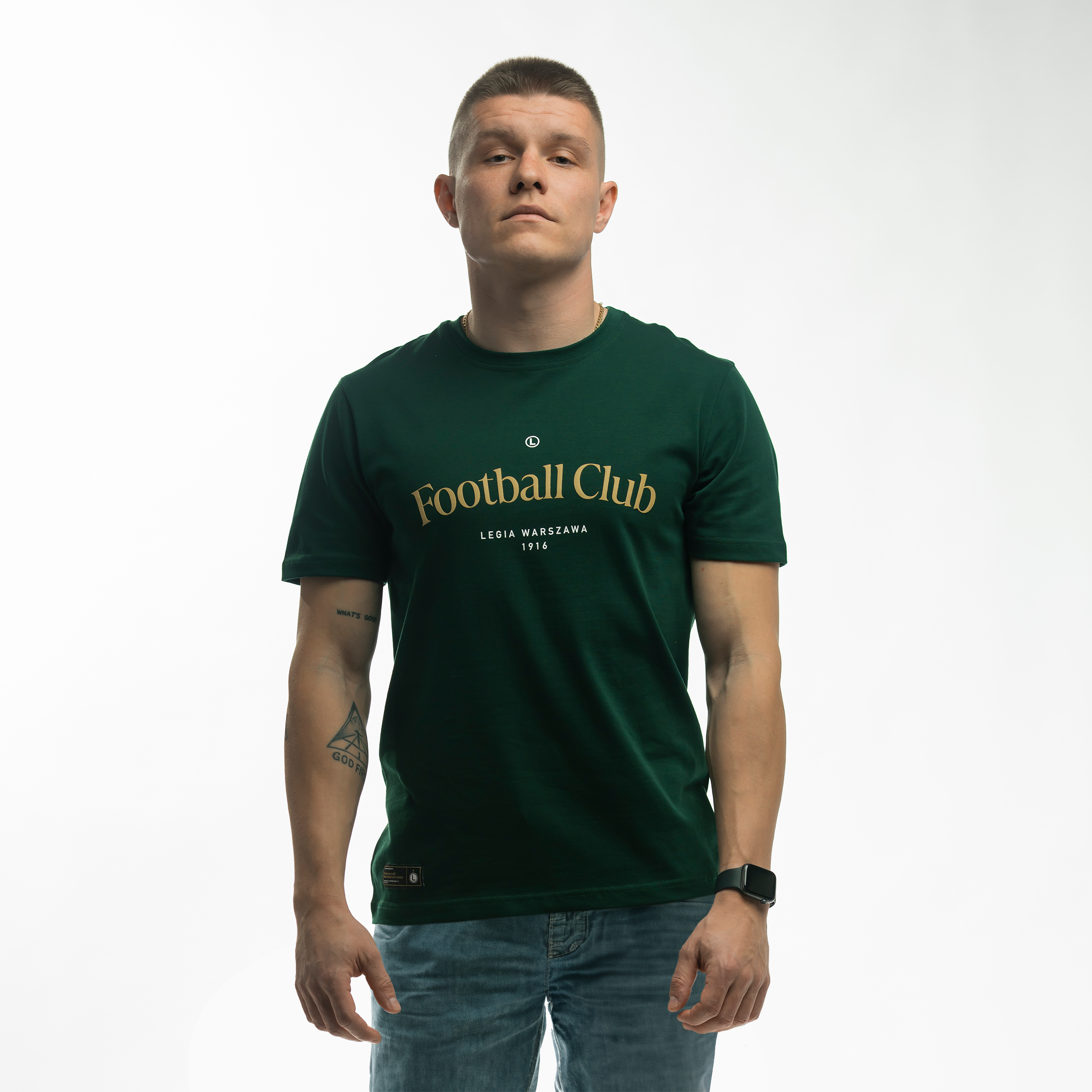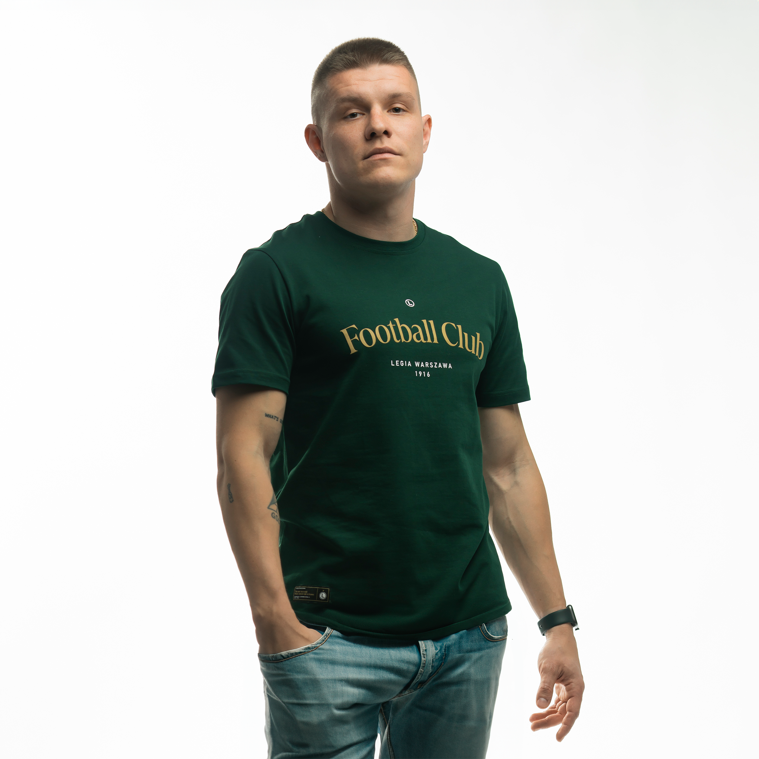 Dodaj zielony t-shirt Football Club do swojej garderoby i podkreśl swoją piłkarską pasję w subtelny sposób. Zamów online z dostawą do domu lub odwiedź Legia FanStore, gdzie chętnie pomożemy dobrać odpowiedni produkt.