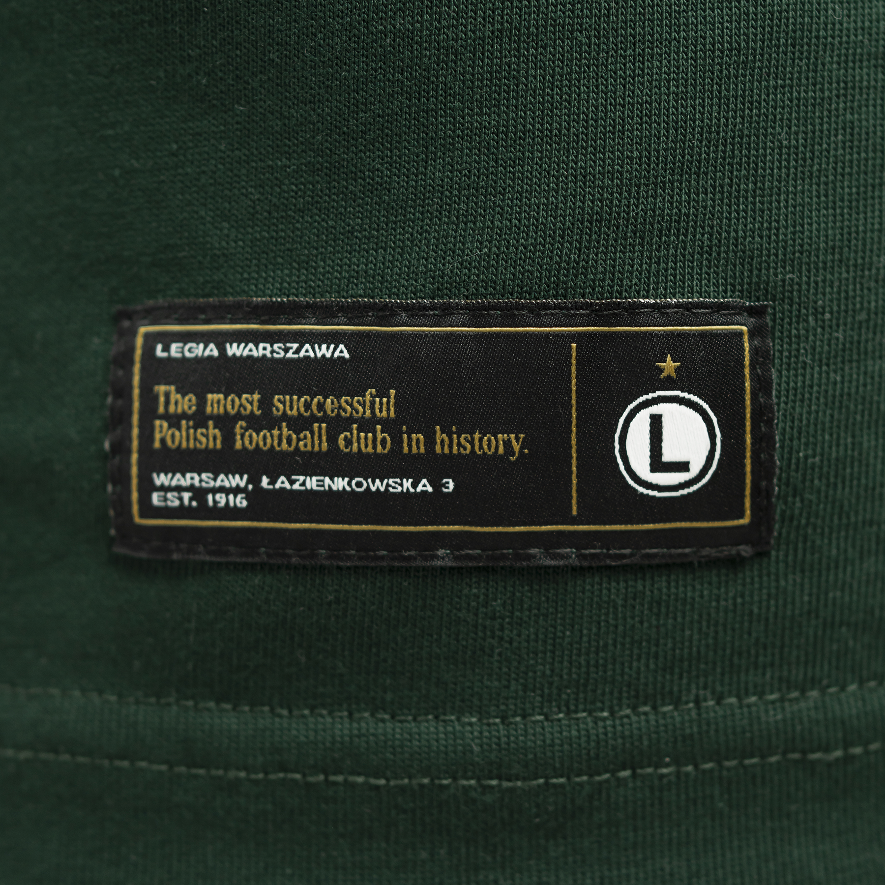 Na dole koszulki umieszczono specjalną naszywkę z napisem „The most successful Polish football club in history, która w subtelny sposób nawiązuje do bogatej historii Legii Warszawa. Natomiast na karku znalazł się gumowy emblemat z napisem „Legia”, nadający koszulce nowoczesnego wyglądu i ekskluzywnego charakteru.